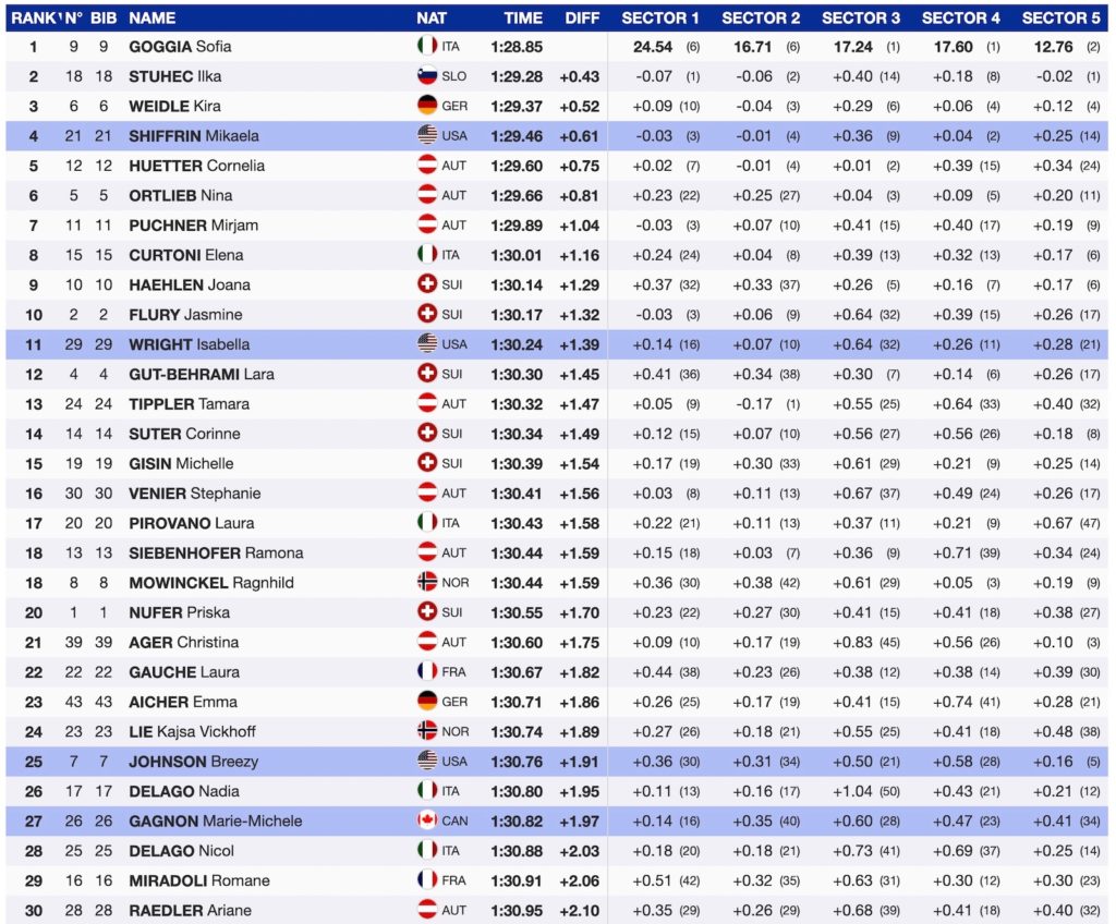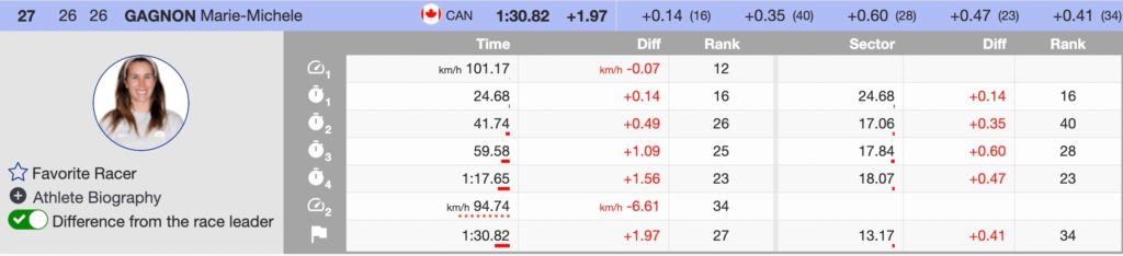 Additionally, Canadian Marie-Michele Gagnon finished in 27th and continues to look for the speed she can produce.