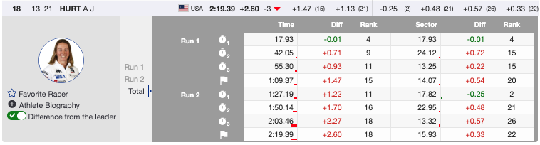 - 4th 🇸🇪 Sara Hector (SWE), Bib 3 — +0.74