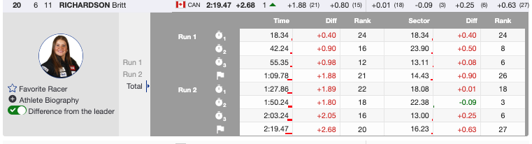 - 20th🇨🇦 Britt Richardson (CAN), Bib 11— +2.68