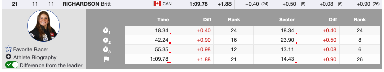 - 21st 🇨🇦 Britt Richardson (CAN), Bib 11 — +1.88