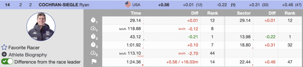 Cochran-Siegle said, “Feeling like I had a good approach mentally skied it with a good amount of flow and just aggression and focusing on those things that I do well. Super tight race, but happy with being able to feel like I pushed in a race. So hopefully, this gives me some confidence just to keep focusing on what I know works and try to build from here.”