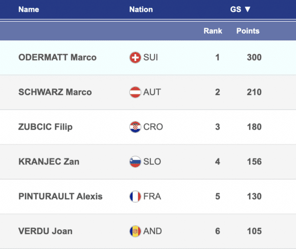 Men’s GS ranking and a look back at the ranks of North Americans last season