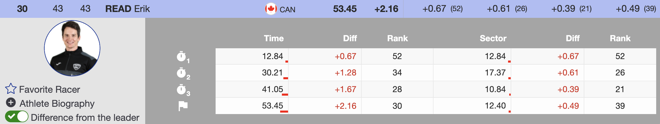 Canadian veteran Erik Read will kick off the afternoon finale as the first racer on course. Read, who had not qualified for the second run of a slalom this season, secured the 30th and final qualifying spot, finishing 2.26 seconds behind leader Timon Haugan. Despite the challenging start to his season, Read extends his impressive streak, scoring slalom points for the 11th consecutive year—a testament to his consistency and determination.
