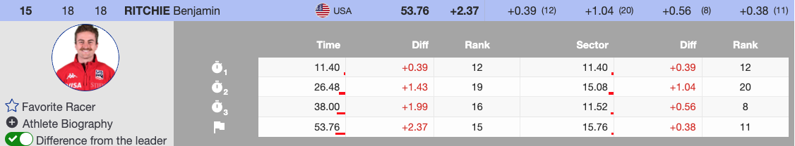 Run analysis of the fastest five and Stifel U.S. Ski Team’s Ben Ritchie
