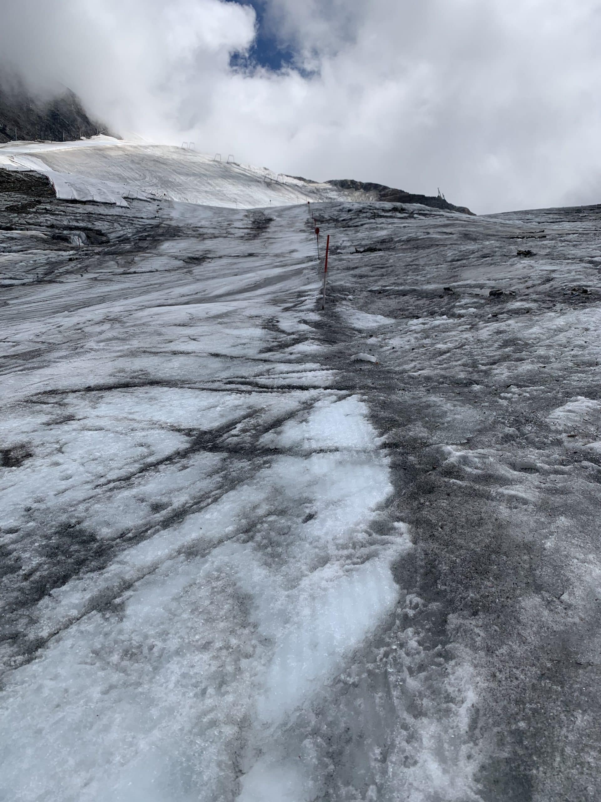 Keeping crevasses filled with snow is crucial to ski field safety and at the moment, snow is tough to come by. The Hintertux skier we spoke with reports that conditions are extremely challenging at the bottom.