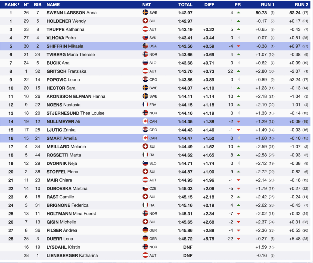 Race results Killington World Cup slalom 11/27/22