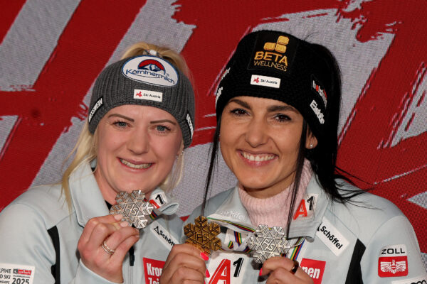 Austria’s Stephanie Venier won the first individual gold medal of the 2025 championships, capturing the women’s super-G title on Feb. 6. More Austrian medals followed in the super-G, downhill, team combined, giant slalom and slalom events: Raphael Haaser (gold men’s giant slalom, silver, men’s super-G), Mirjam Puchner (silver, women’s downhill), and Vincent Kriechmayr (silver, men’s downhill), (bronze Venier / Katharina Truppe team combined), and ( bronze Katharina Liensberger’s slalom).