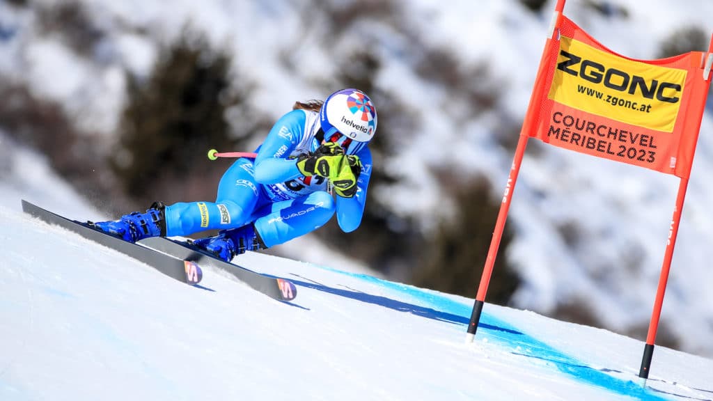 It was another blue sky day in Meribel. Notably, the course was 15 seconds longer than the alpine combined super-G. Also, the course was a challenge that combined high-speed gliding, significant sweeping turns and terrain. For the second women’s race in a row, an Italian won. Today it was Marta Bassino who stood on the top step.