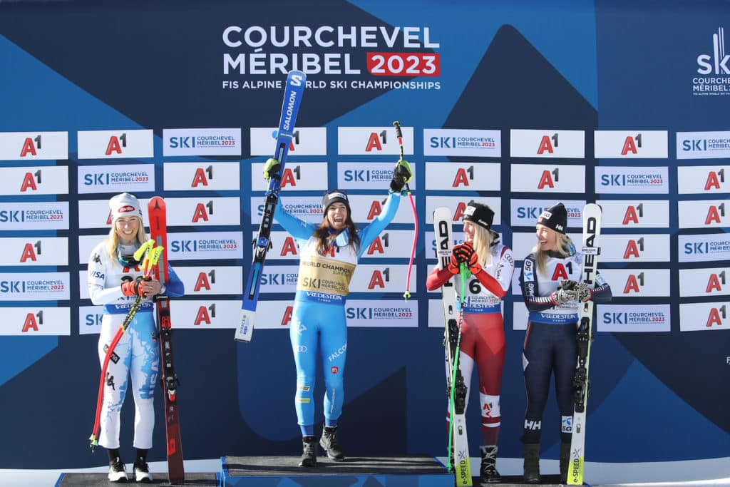 “I’m speechless, it’s my first win in super-G, and here at the world championships, it is something I have to realize,” Bassino said. “Today I just did a great last part because I lost a lot of time in the first part. I was really suffering watching all the other girls coming down. I’m really happy and confident in myself, it’s really a great result for me.”