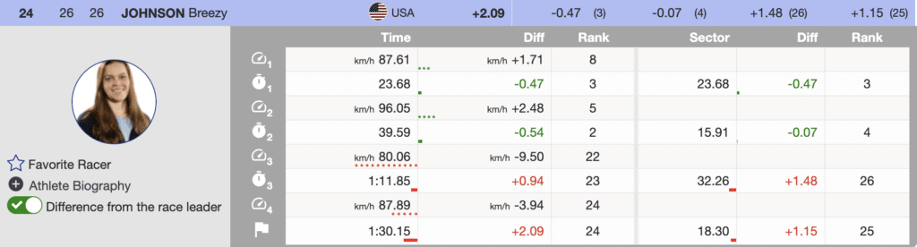 Women’s super-G results and analysis of the fastest three and North Americans