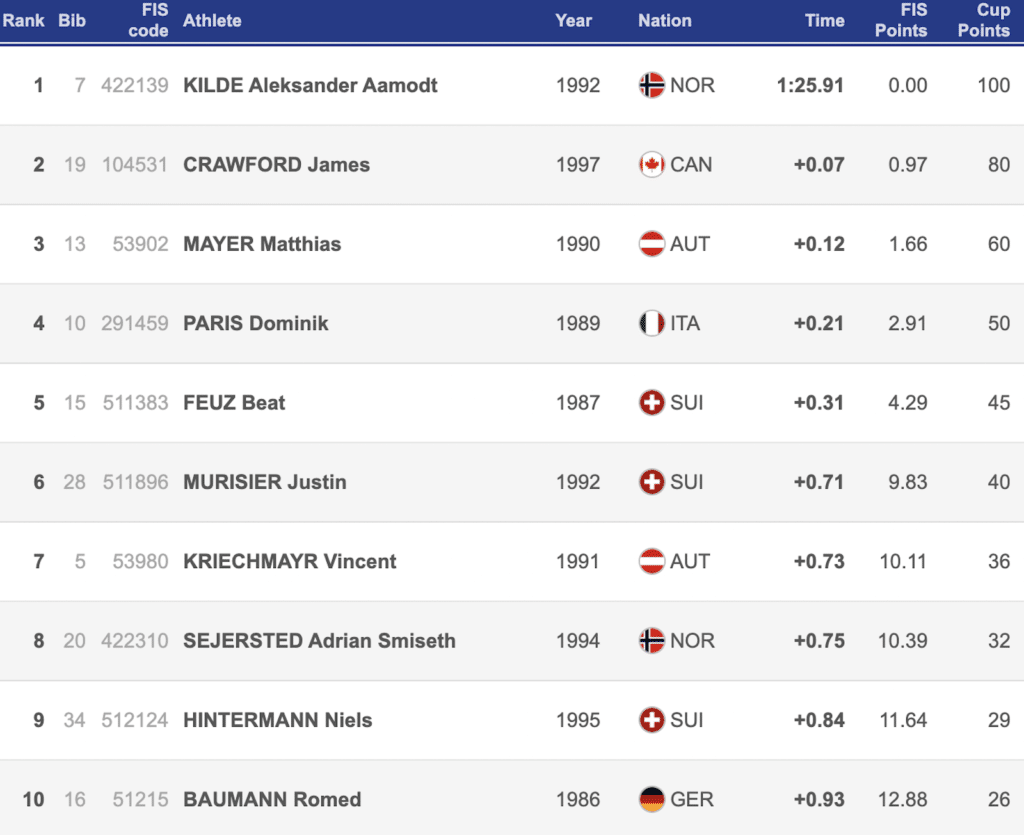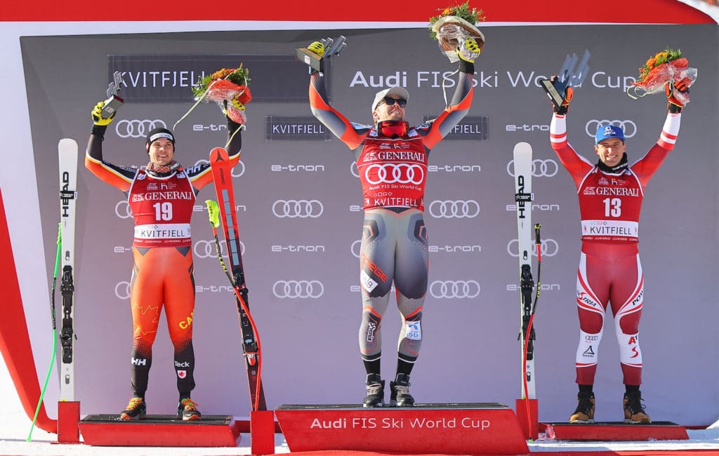 James Crawford (CAN), Aleksander Aamodt Kilde (NOR) and Matthias Mayer (AUT). Photo: GEPA pictures