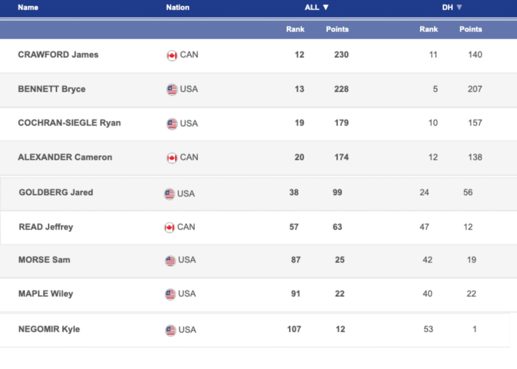 Sam Morse conquered his best downhill of the season today (18th place) and will be gunning it to increase his rankings tomorrow.