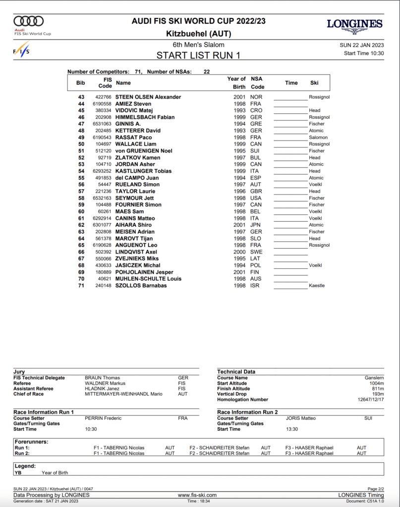 In the USA, Kitzbühel’s slalom can be viewed live and replayed on Peacock TV. Kitzbühel is in Austria and its FIS content rights are controlled by IMG, which have sold alpine skiing for US viewers to Peacock TV. Peacock TV requires a subscription.