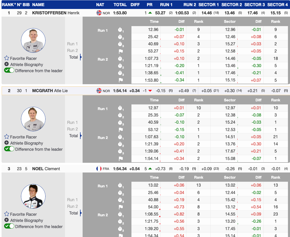 2nd 🇳🇴 Atle Lie McGrath (NOR, 2000, Head) — +0.34