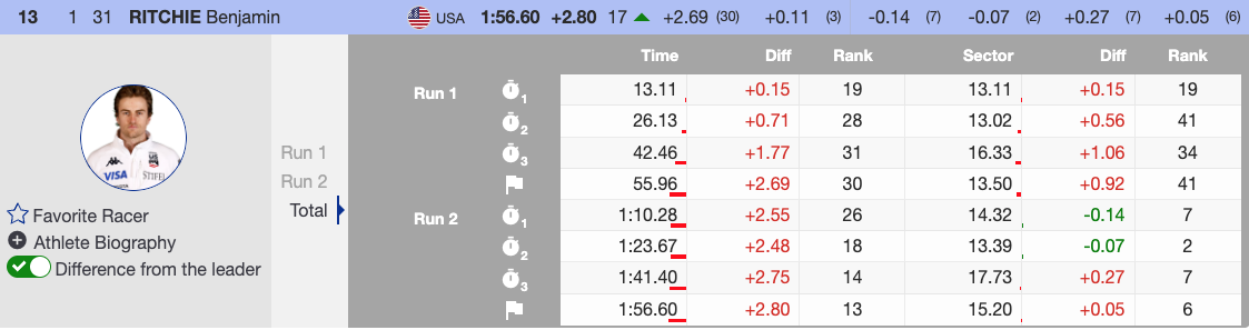 “I just tried my best and skied my run,” he said. “I’ve already moved up a couple spots, so hopefully we keep moving up some more.”