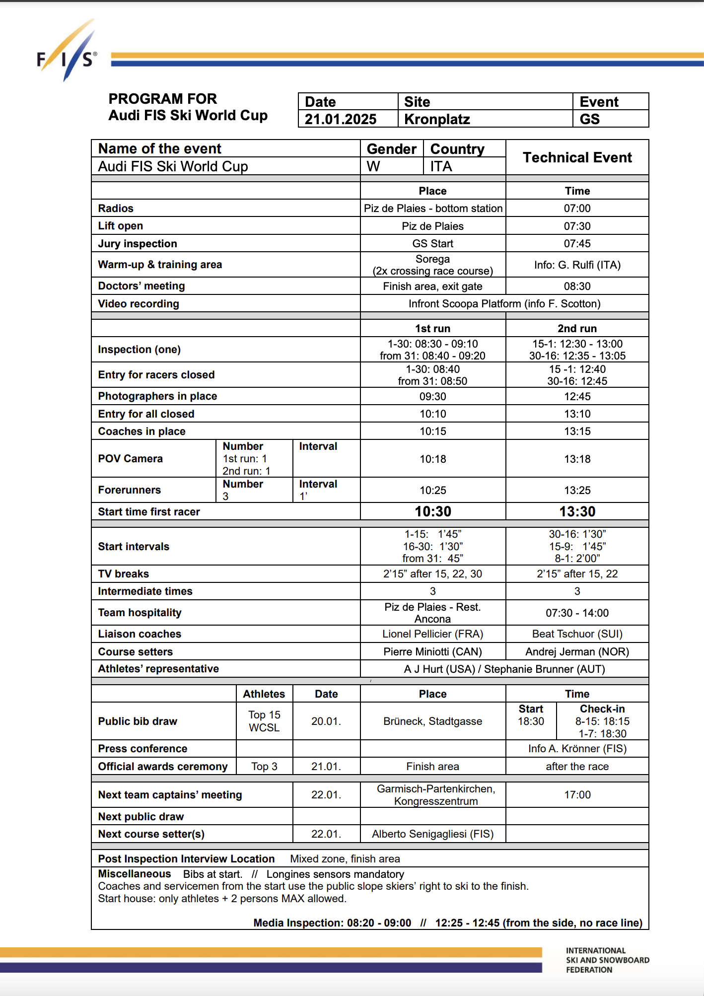 With only five giant slalom (GS) races left this season, Kronplatz is the final chance for athletes to showcase their skills ahead of the World Championships in Saalbach. As the last GS race before team selections, a strong performance here could be the deciding factor for those on the bubble, solidifying their place on their nation’s roster for the prestigious event.