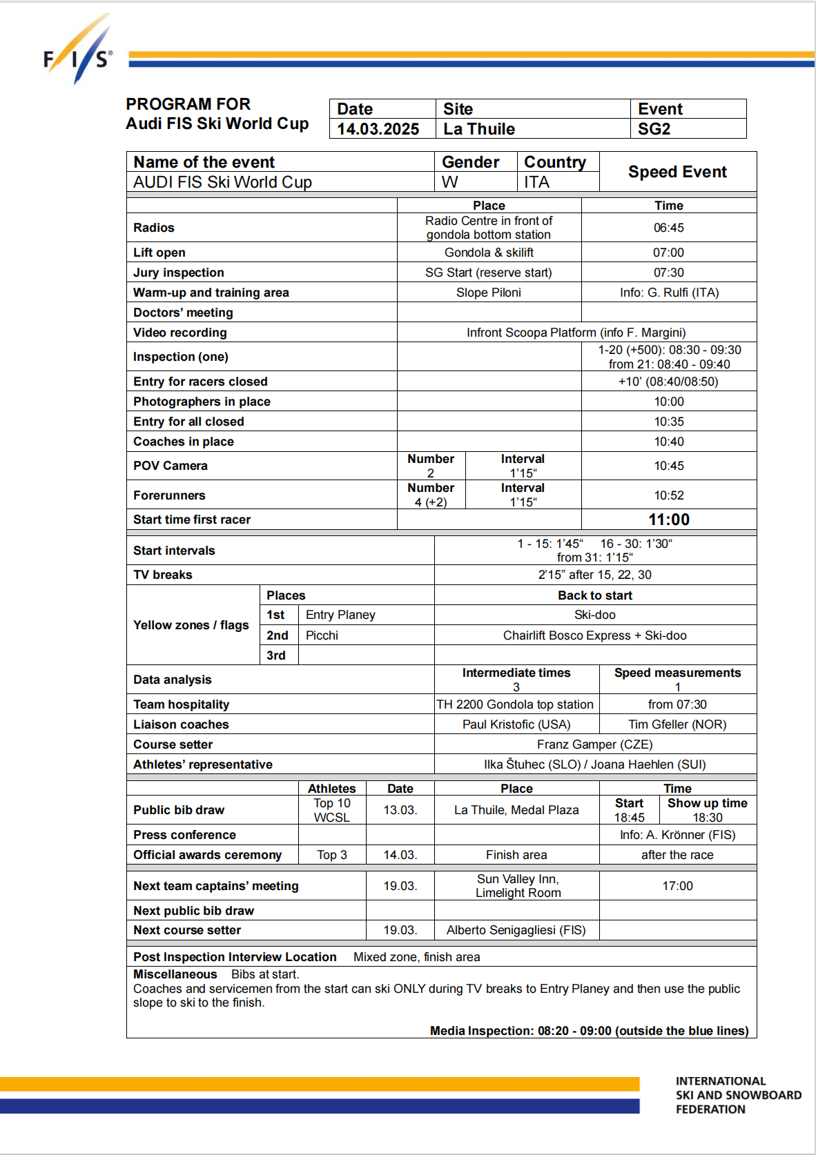 - Tricia Mangan (31st) – A consistent competitor in super-G, Mangan is aiming to break into the top 30 after a disappointing DNF in the first La Thuile super-G.