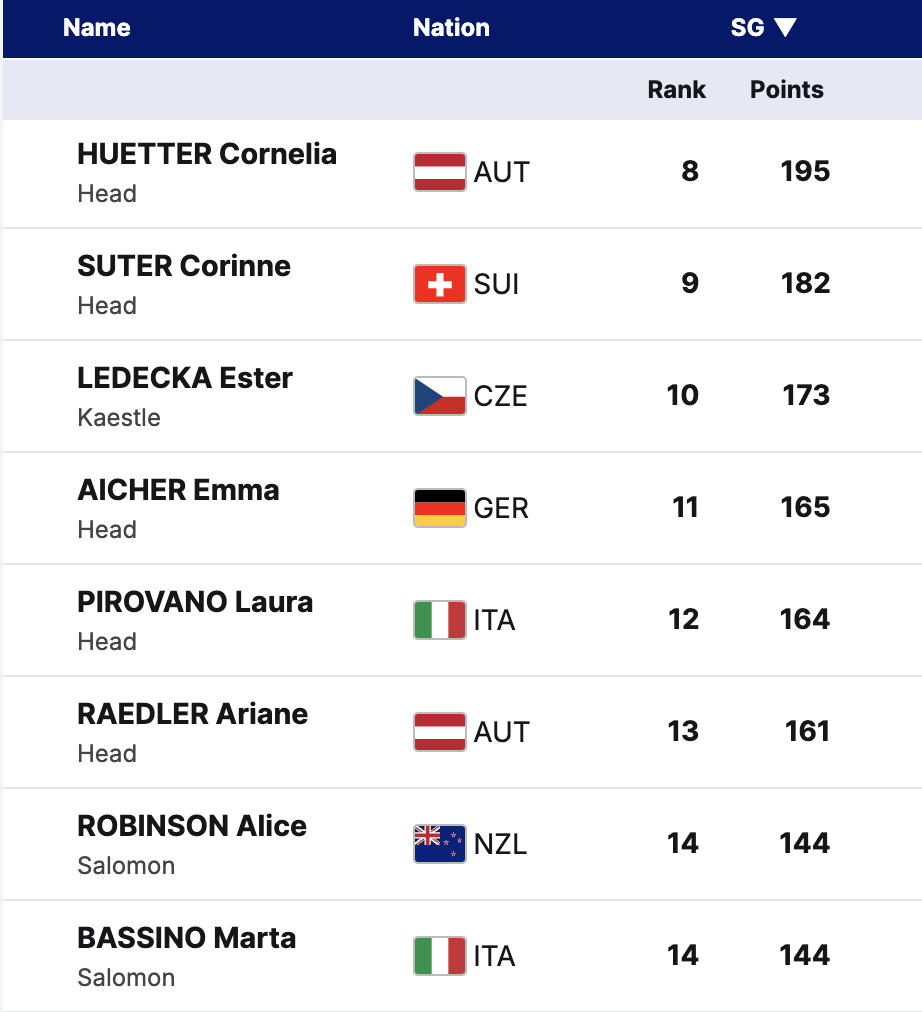 Analysis of the Top 15 in the Women’s Super-G Standings