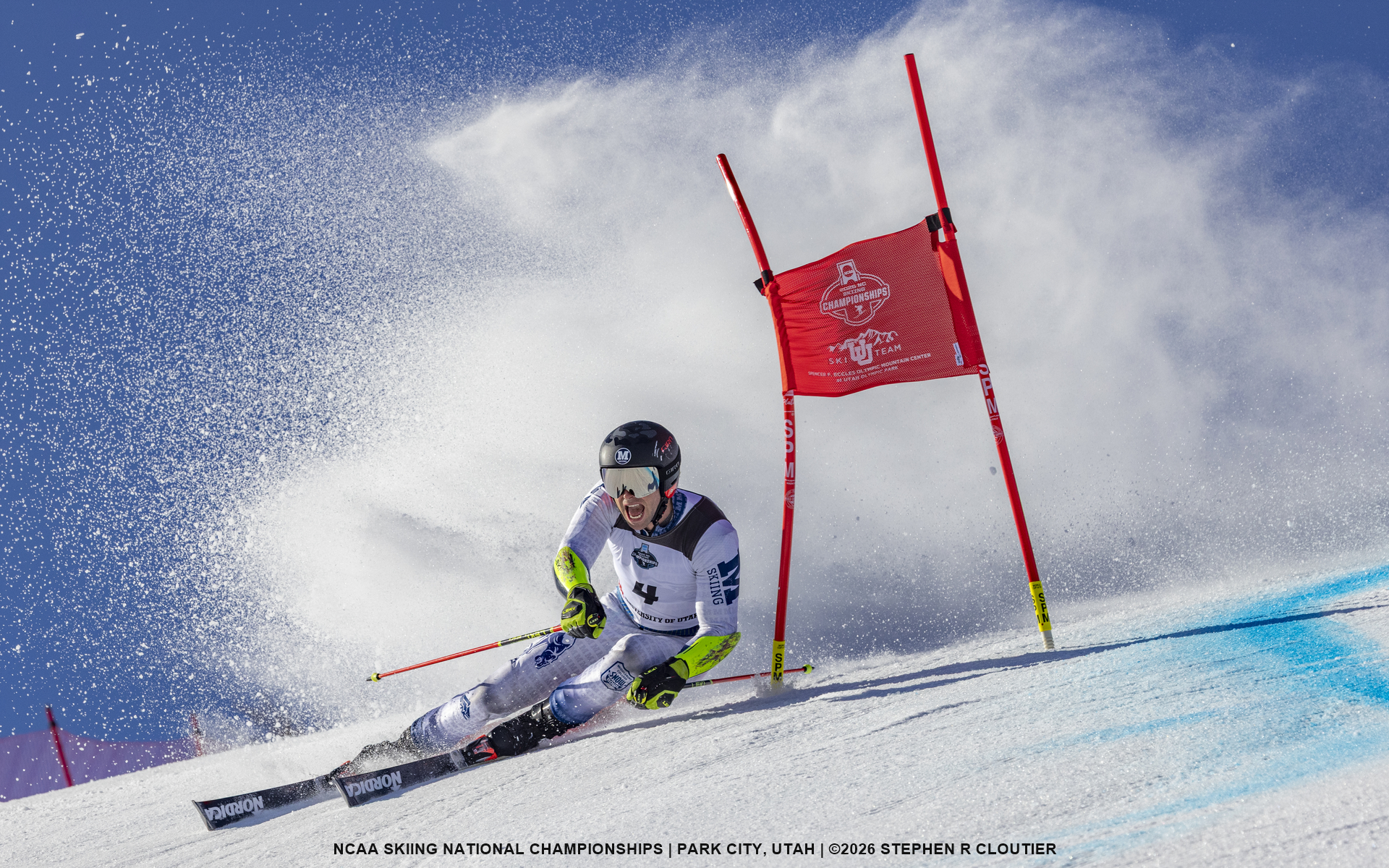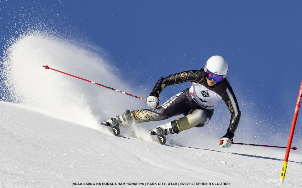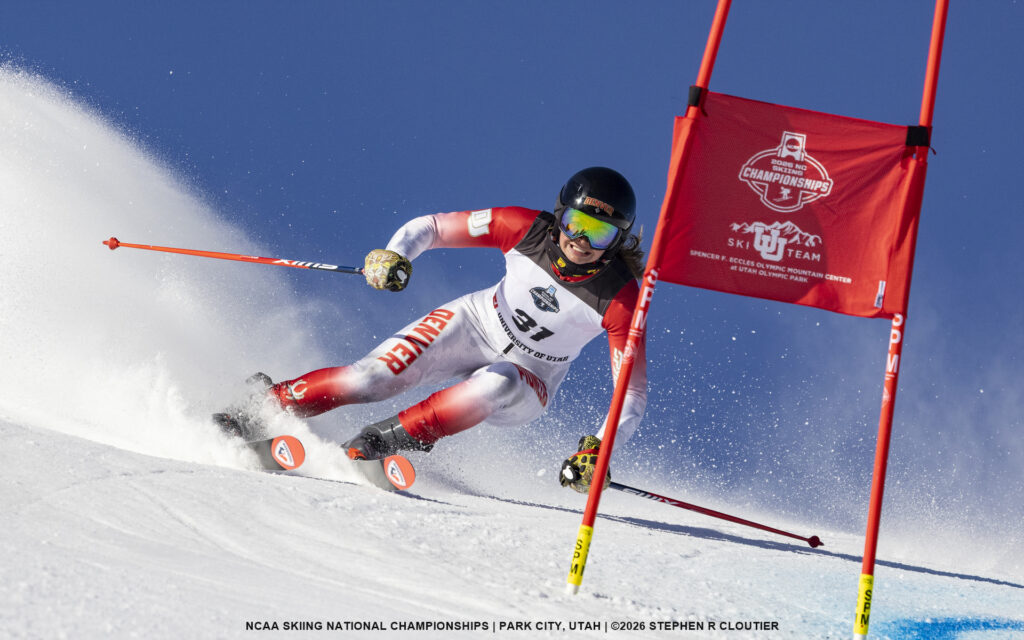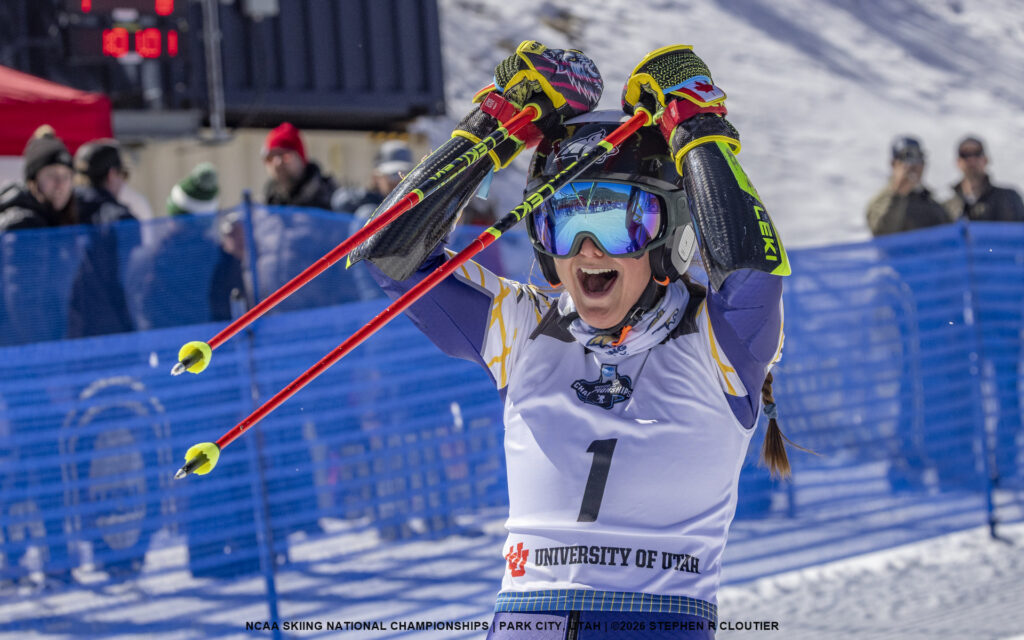 Under blue skies but increasingly challenging snow conditions, the women’s NCAA Giant Slalom delivered exciting racing as athletes battled both the demanding terrain and the deteriorating track at Utah Olympic Park.
