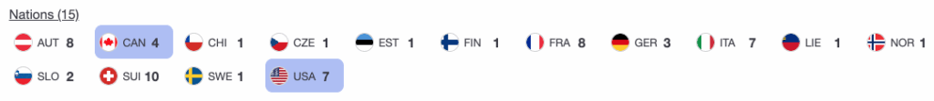 - Countries on the podium: 4 (🇨🇭 SUI, 🇮🇹 ITA, 🇺🇸 USA, 🇳🇴 NOR)