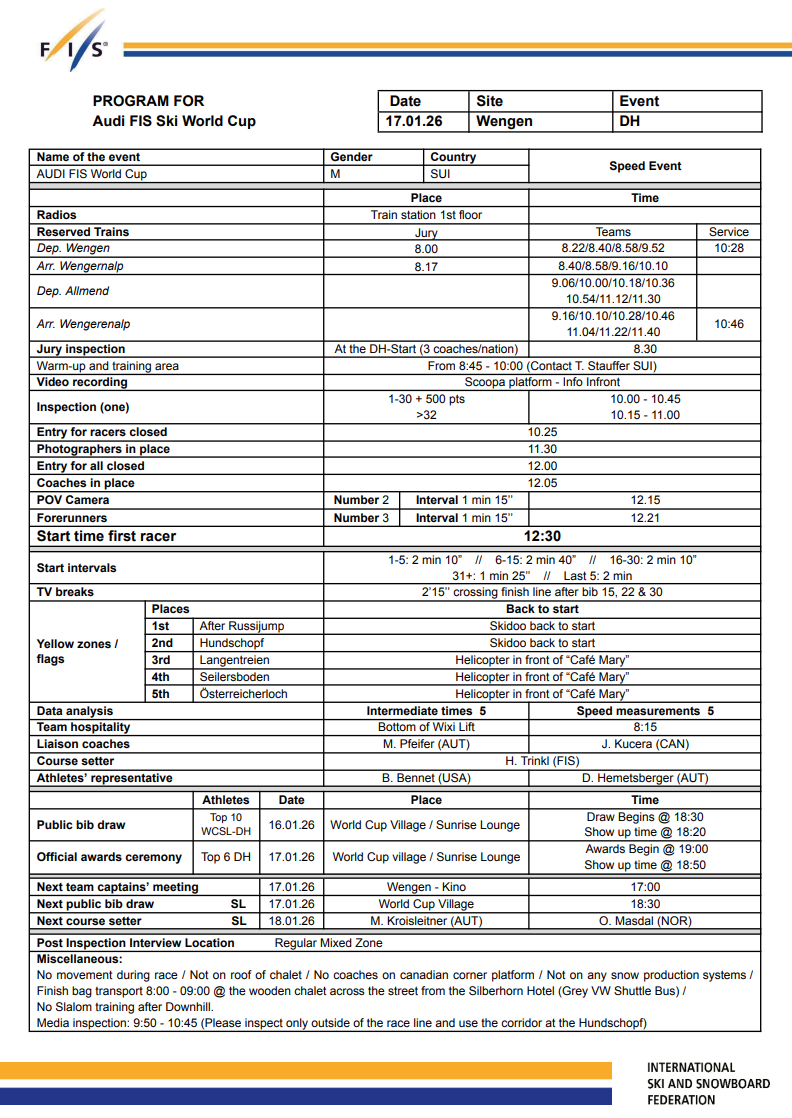 Saturday’s men’s downhill is only the fourth race of the discipline this season, amplifying the stakes in a winter with limited downhill opportunities. With so few starts so far this season, every result carries outsized importance — and nowhere more so than on the Lauberhorn.