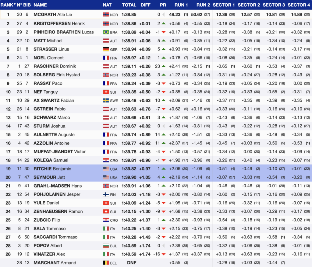 • 20th — 🇺🇸 Jett Seymour, Bib 47, USA, YOB 1998 — +1.05