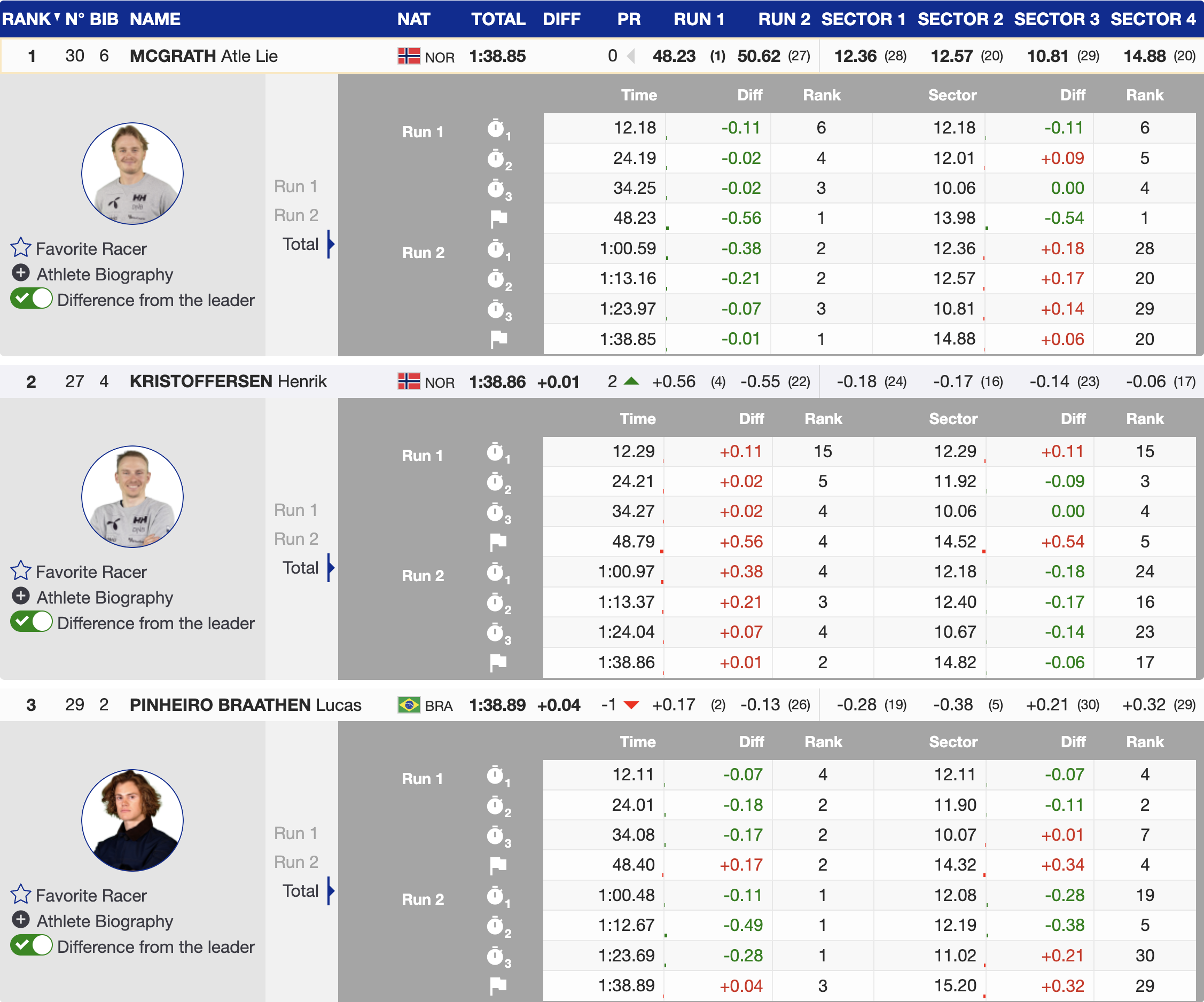 3rd 🇧🇷 Lucas Pinheiro Braathen (BRA), Bib 2, YOB 2000, Oakley — +0.04