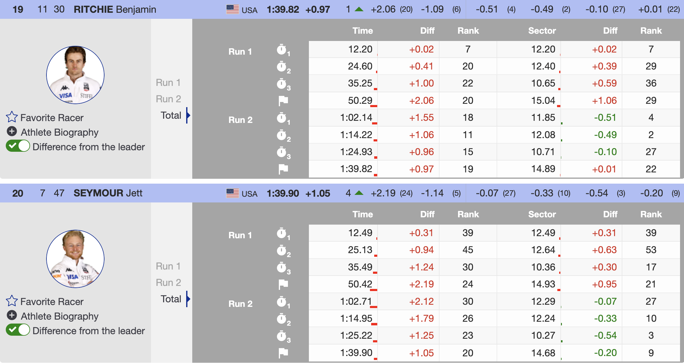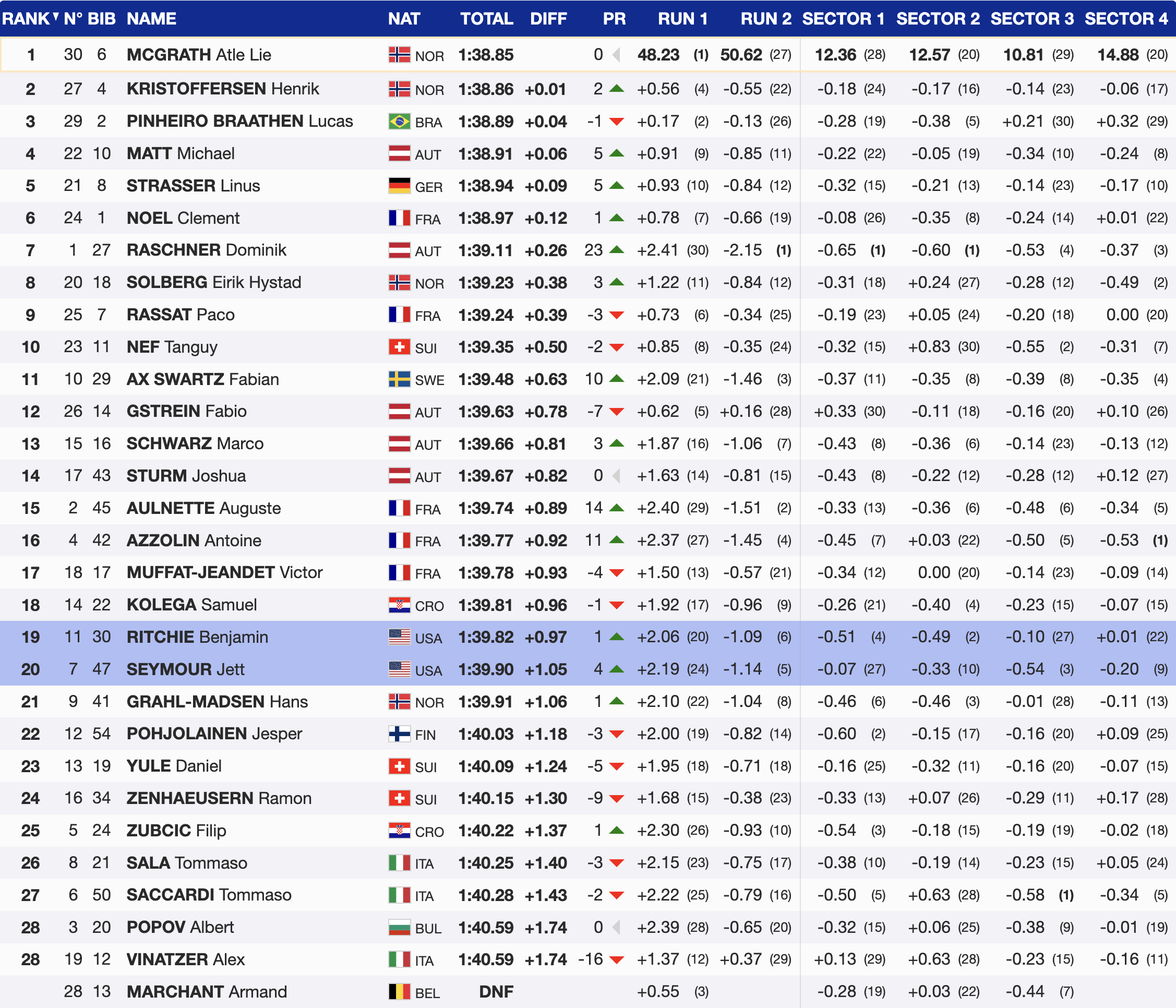 • 19th — 🇺🇸 Benjamin Ritchie, Bib 30, USA, YOB 2000, Head — +0.97