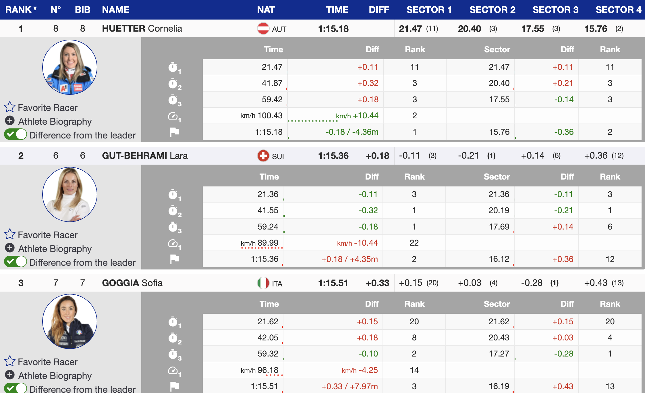 It was a truly star-studded podium, featuring three of the sport’s most decorated and dominant athletes. Hütter, Gut-Behrami, and Goggia once again proved why they are among the elite in Alpine skiing.