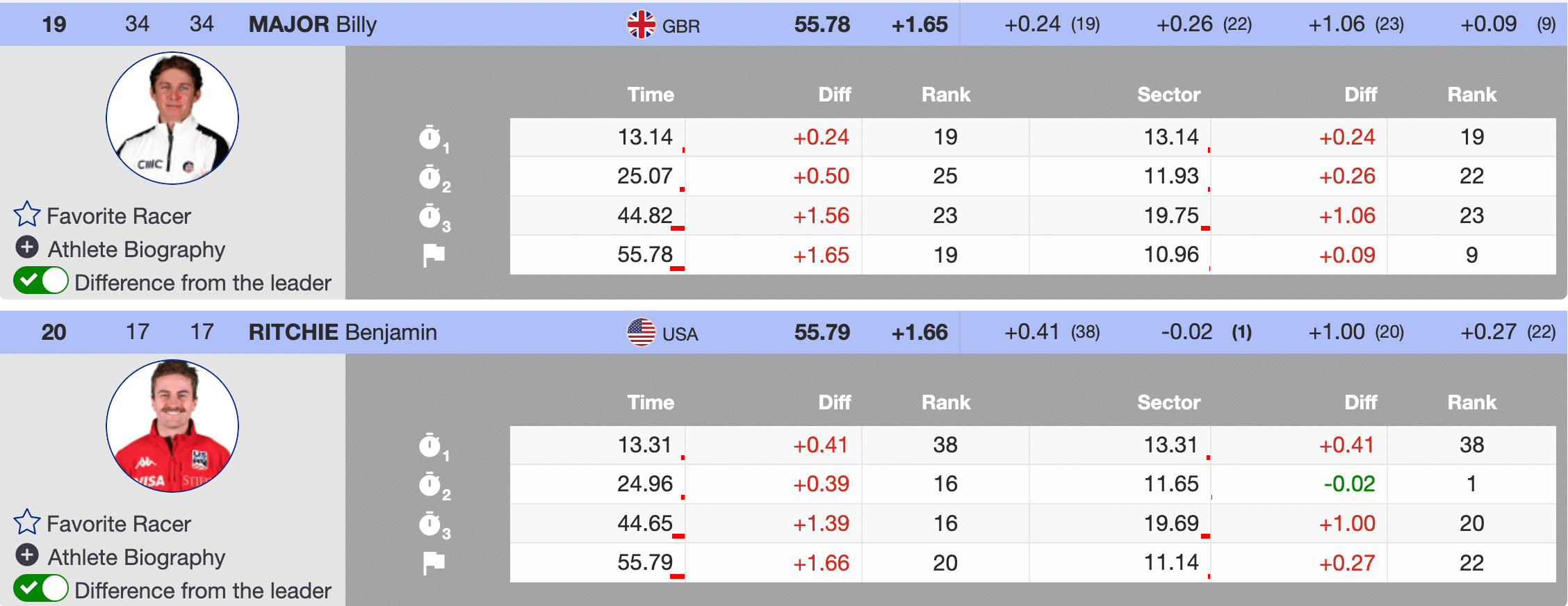 - Billy Major (GBR) — bib 34 — 19th, +1.65