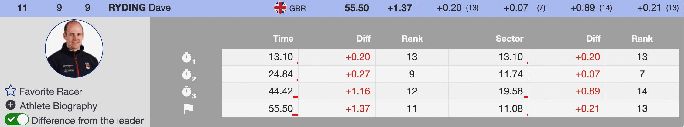 - Dave Ryding (GBR) — bib 9 — 11th, +1.37