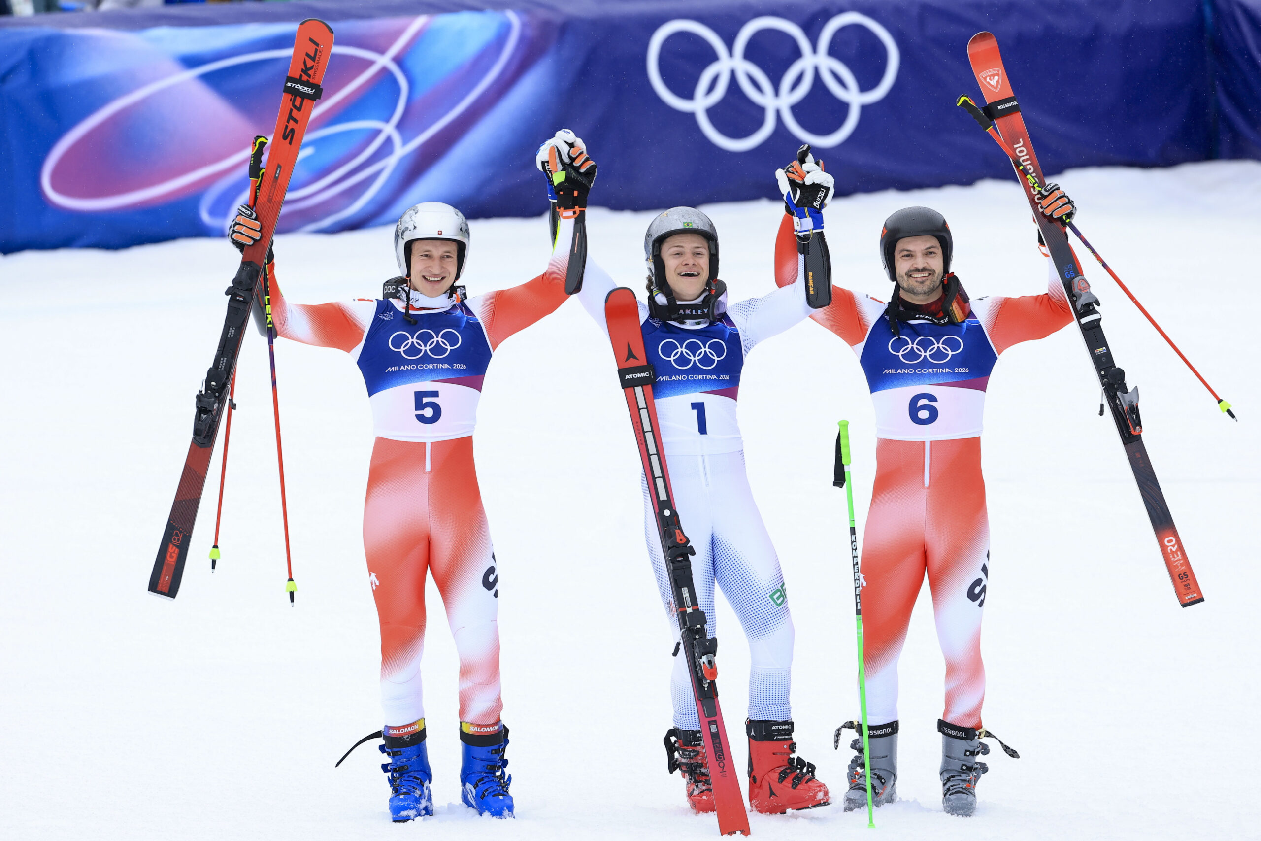 On a course set to reward direct power skiing, he attacked in the second run. His time was 0.59 faster than Loïc Meillard’s and guaranteed at least silver with one skier remaining.