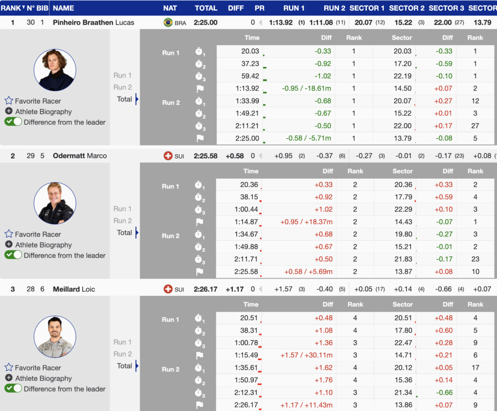 Odermatt delivered exactly that. He smashed the lead by 0.59 seconds over Meillard and guaranteed himself at least silver.