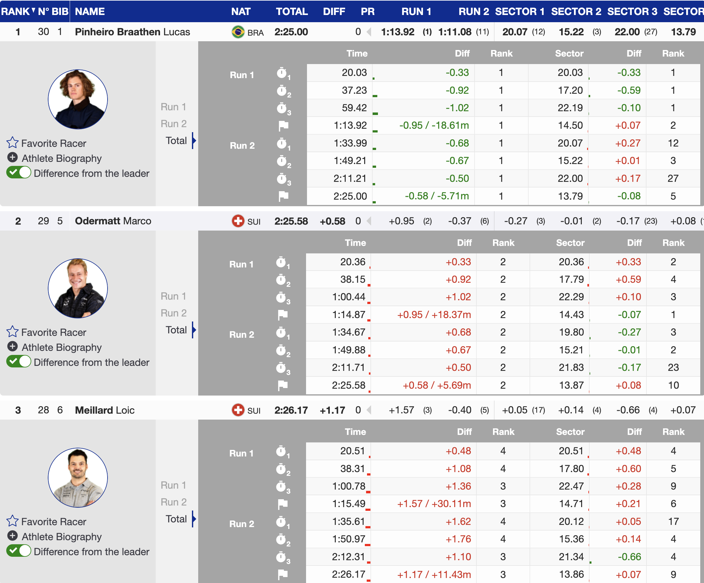 - In the first sector of Run 2, he conceded ground to Odermatt.