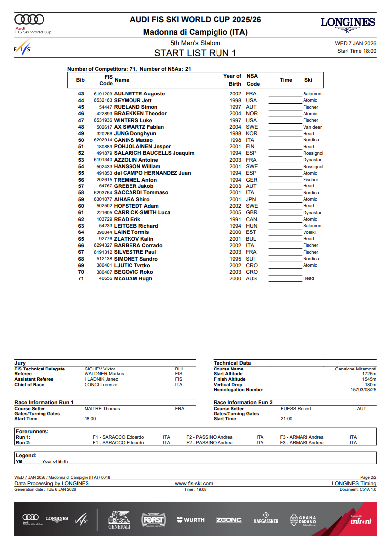 The men’s World Cup slalom season arrives in Madonna di Campiglio on Wednesday night with momentum, uncertainty, and pressure all converging at one of the sport’s most iconic venues. With five slaloms remaining before the Olympic break, January will shape Olympic qualification, Olympic seeding, and much of the World Cup Finals field in Norway.