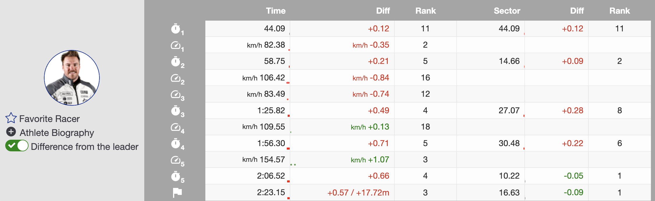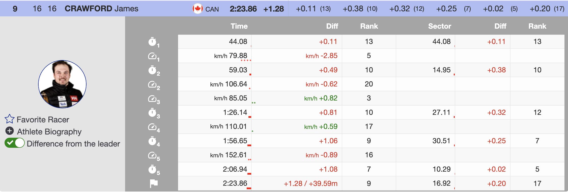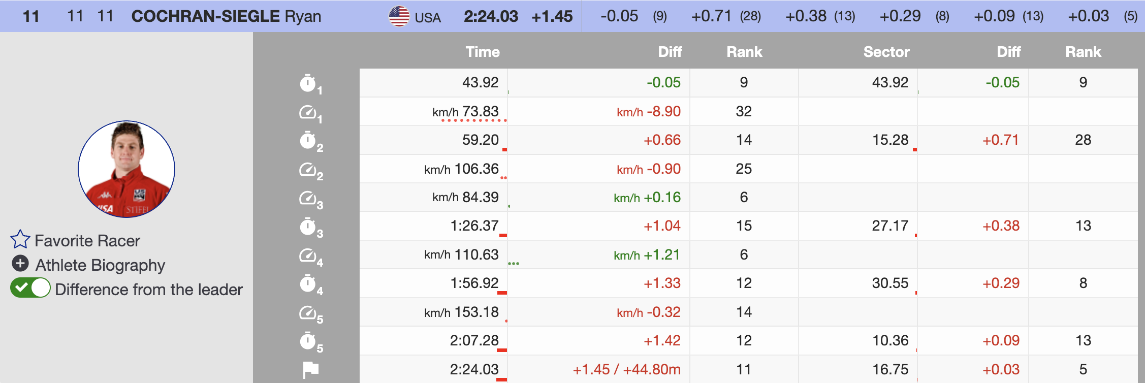 Immediately after Paris, Canada’s Cameron Alexander became the first North American to threaten the lead. Charging confidently through the sectors, Alexander ultimately finished 0.14 seconds off the pace, temporarily taking third place. Though he dropped to fifth by the end, Alexander remained the top North American finisher.