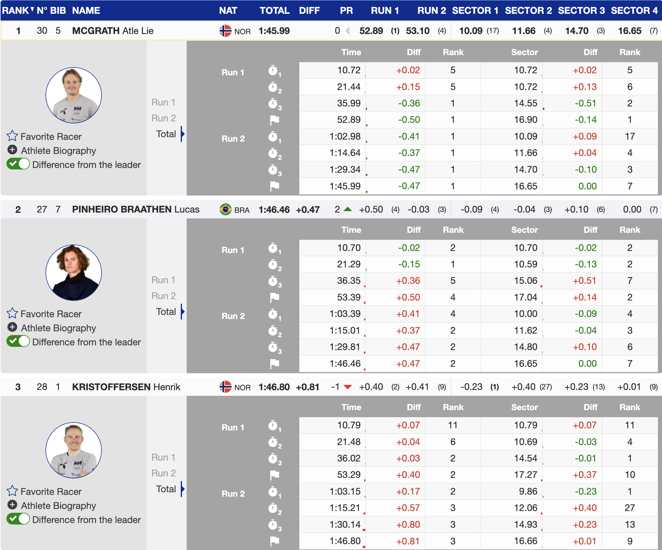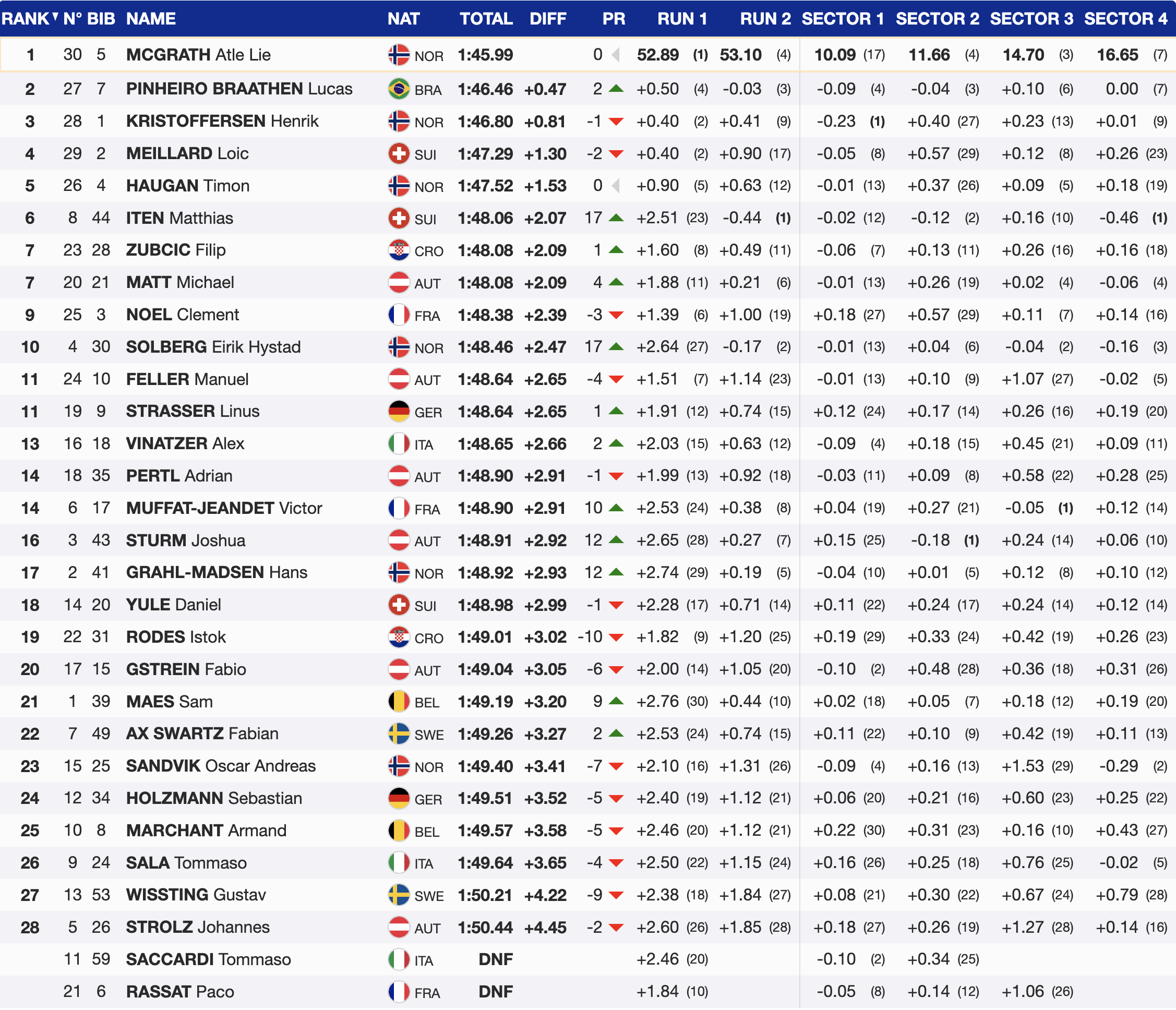 - 1st — 🇳🇴 Atle Lie McGrath (NOR) — YOB 2000 — HEAD