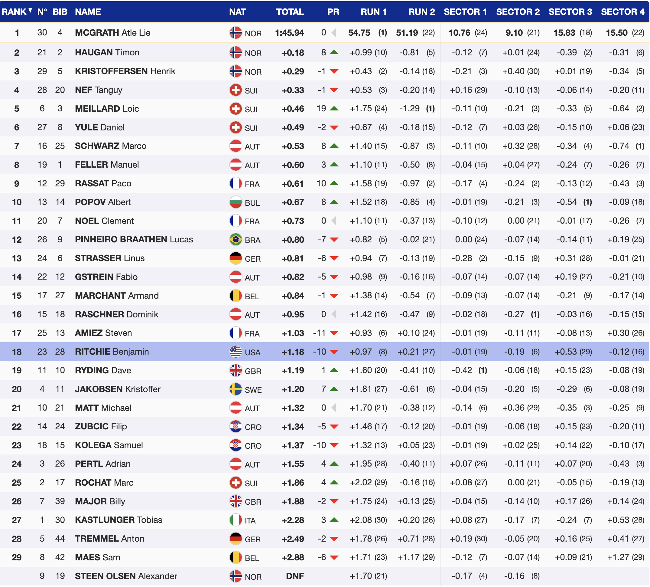 Ritchie ultimately finished the day in 18th, marking his third-best career result. While the final outcome may not have matched his earlier promise, the performance added significantly to his season’s point total, reflecting his continued growth and consistency on the World Cup circuit.