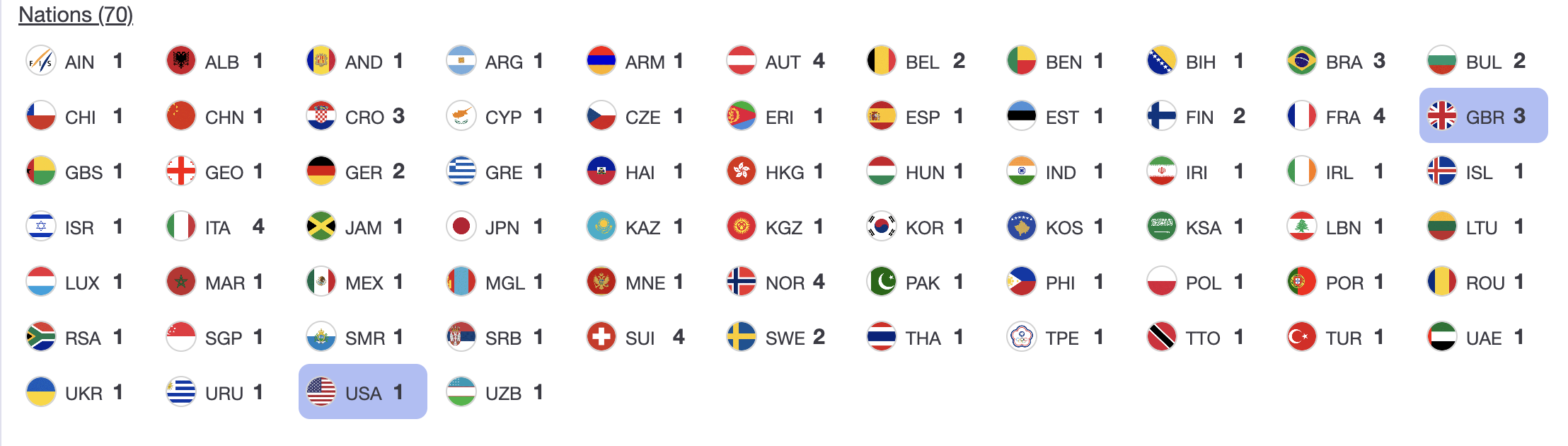 The United States will be represented by one skier.
