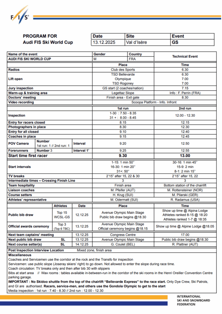 VAL D’ISÈRE, France — The men’s Alpine World Cup returns to Europe on Saturday with the Val d’Isère giant slalom, the fourth GS of the 2025–26 season and the first giant slalom held in Europe this winter. With the Olympic season underway, early discipline points already matter, and Bellevarde provides a demanding stage for the next test.