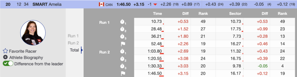 - 20th — 🇨🇦 Amelia Smart (CAN), Bib 34, 1998, Atomic — +3.15