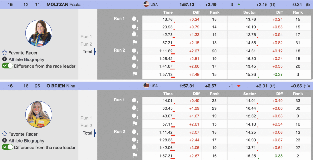 The FIS invites the best 25 skiers from each discipline to compete in the World Cup finals. After a difficult start to the season, Nina O’Brien ended the regular season tied for 25th. Her return from her Olympic injury appears to be quite successful.