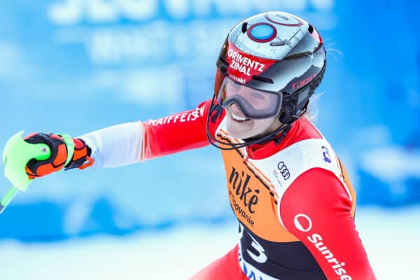 Next up was Rast’s teammate Michelle Gisin; she skied well but not nearly as fast as Rast. She crossed with the second-best total time but (+0.96) behind Rast.