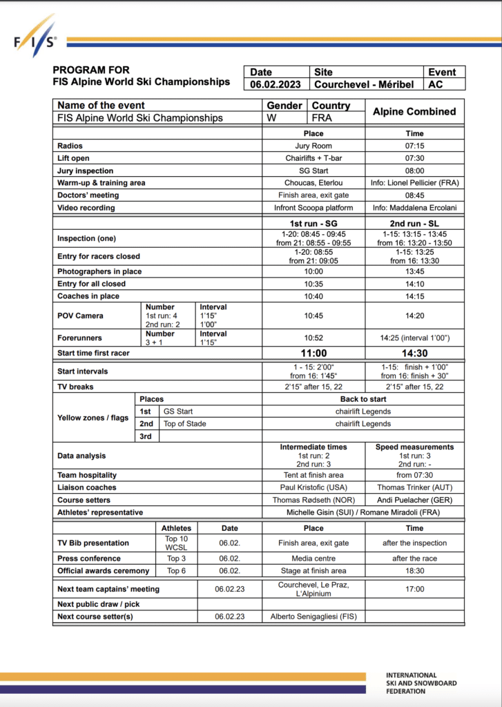 The format for tomorrow’s alpine combined is the total of the times from one run of super-G and one run of slalom.