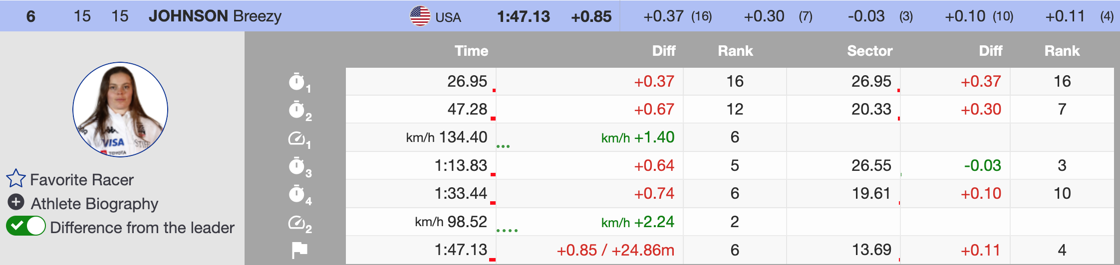 - 6th Breezy Johnson🇺🇸- (+.85)