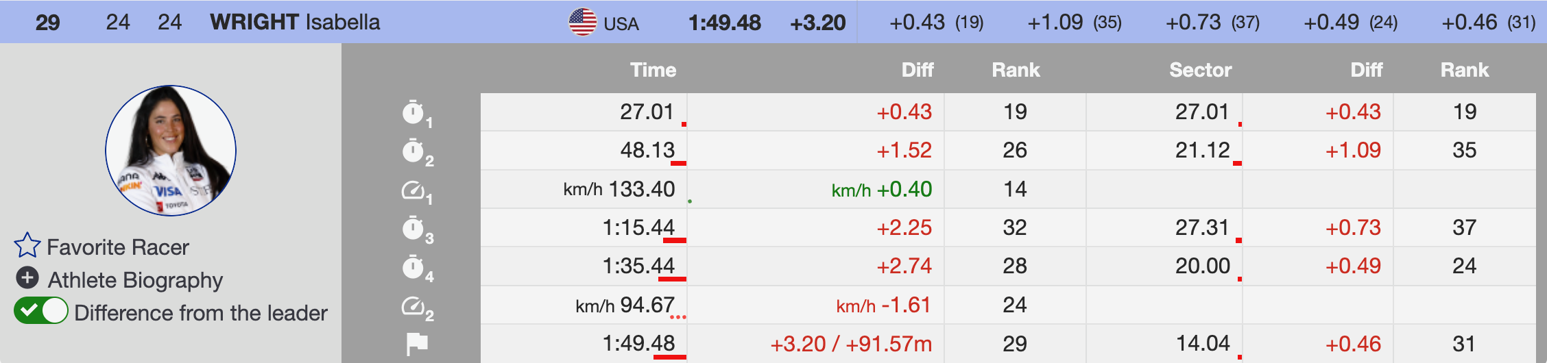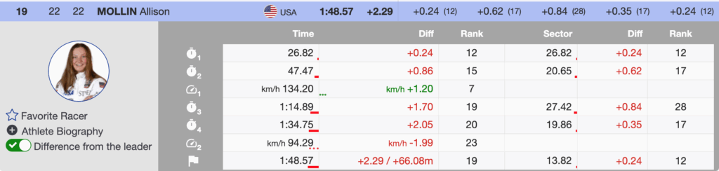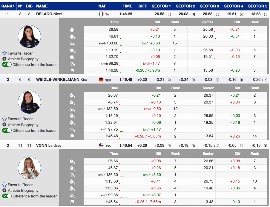 - 3rd Lindsey Vonn 🇺🇸 – (+.26)