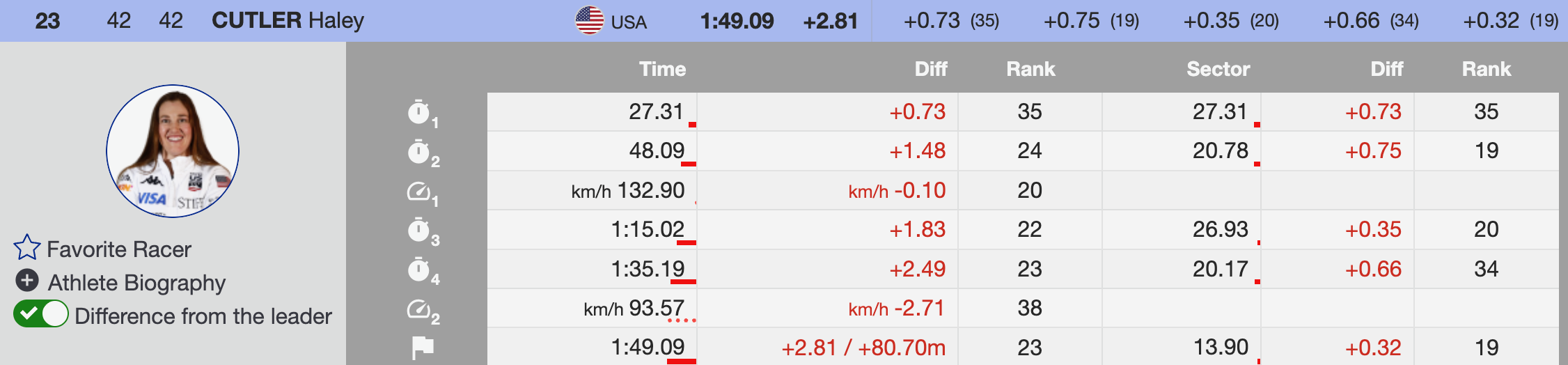 - Bib 42- Haley Cutler 🇺🇸- 23rd, +2.81