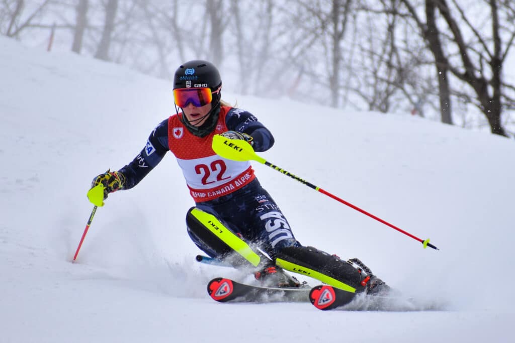 The slalom podium was dominated by the Americans. Two current Stifel US Ski Team members and Burke Mountain Academy Alumi, Nina O’Brien and Zoe Zimmerman, were on the first and second step of the podium. Lila Lapanja finished in third. Lapanja is not a current member of the Stifel US Ski Team, but her performance in the 2021-22 NorAm season earned her the NorAm World Cup start quota.