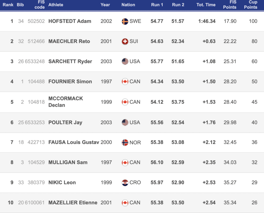Adam Hofstedt, Reto Maechler and Ryder Sarchett finished the men’s slalom in first, second, and third, respectively.
