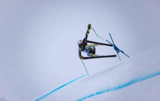 Patrick Lebeau at his limit, Burke super-G: Photo credit Jay Riley After a wet front
